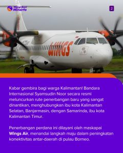 Penerbangan perdana ini dilayani oleh maskapai Wings Air, yang menandai langkah maju dalam peningkatan konektivitas antarwilayah di Pulau Borneo. Dengan dibukanya rute langsung ini, mobilitas masyarakat, wisatawan, dan pelaku bisnis di kawasan Kalimantan akan semakin efisien dan mudah.